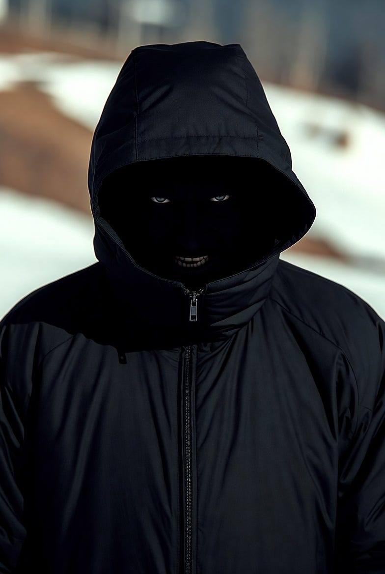 He wore the same black one piece ski patrol outfit that Roger had watched in the video. Just like in the video, his black hood was up, but he now wore a black balaclava and mirrored ski goggles. Roger couldn’t even guess the ethnicity of this infamous man in black, not a trace of skin was showing.